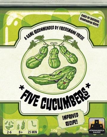 Five Cucumbers is a modern variant of the trick-taking game Cucumber (Agurk, Gurka), which is well-known primarily in Scandinavia. We are excited to bring you our new version!